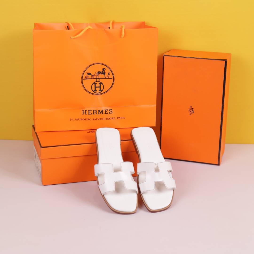 Hermes Paris Oran High End Premium Flats With OG Box & Carry Bag (White - 1122)